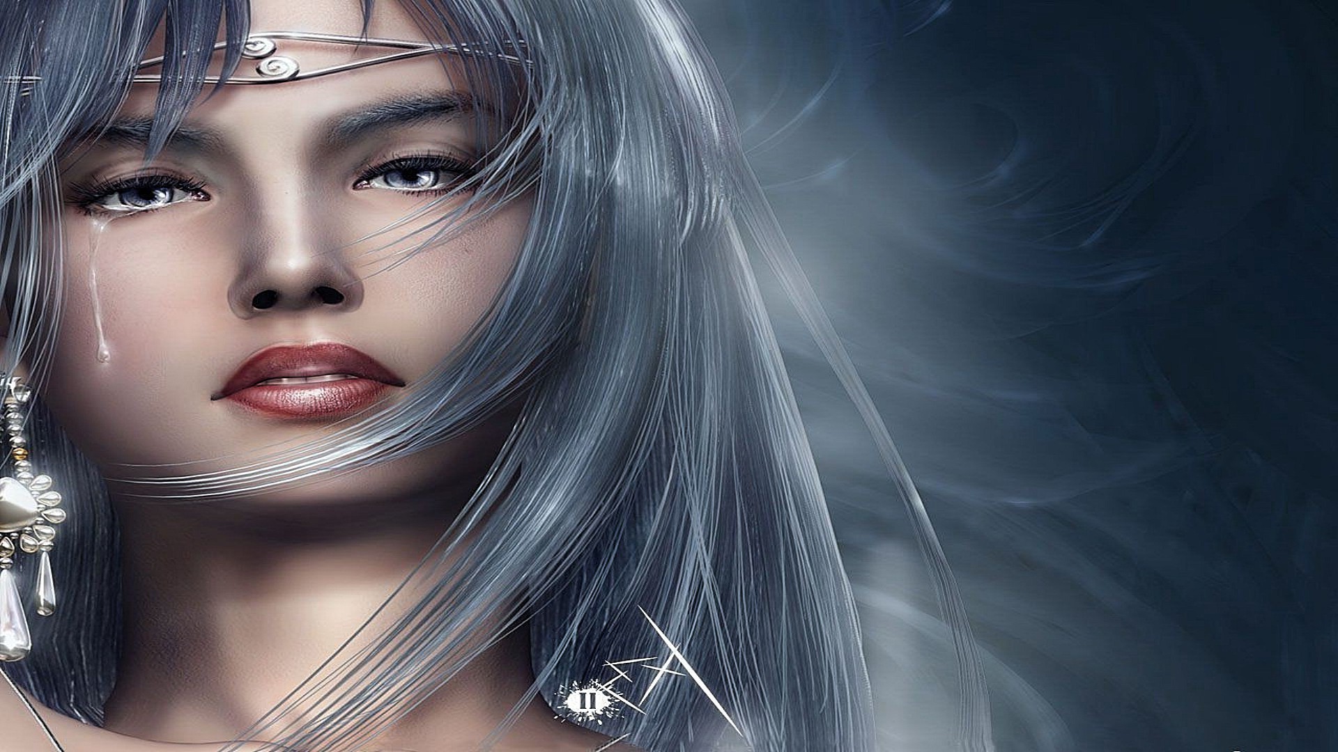 Fille aux cheveux bleus d'un jeu d'ordinateur