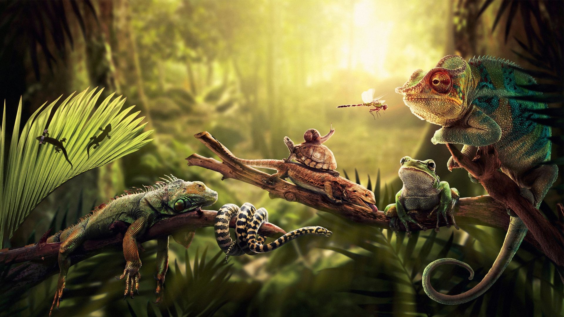 DEUX TIGRES AU REPOS SUR LE FOND DE LA FAUNE
