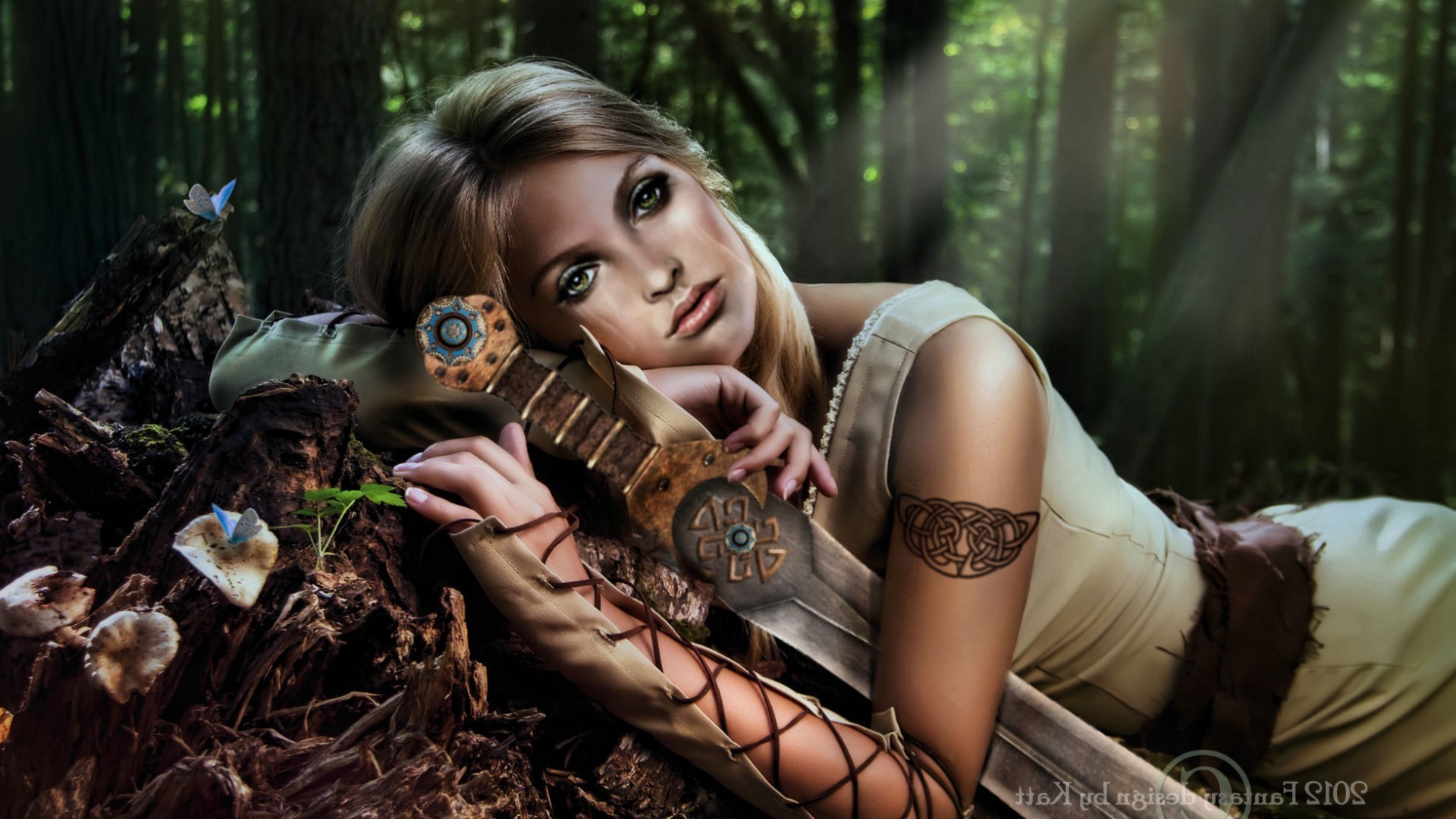 Blonde en bikini bleu dans la fontaine de pulvérisation