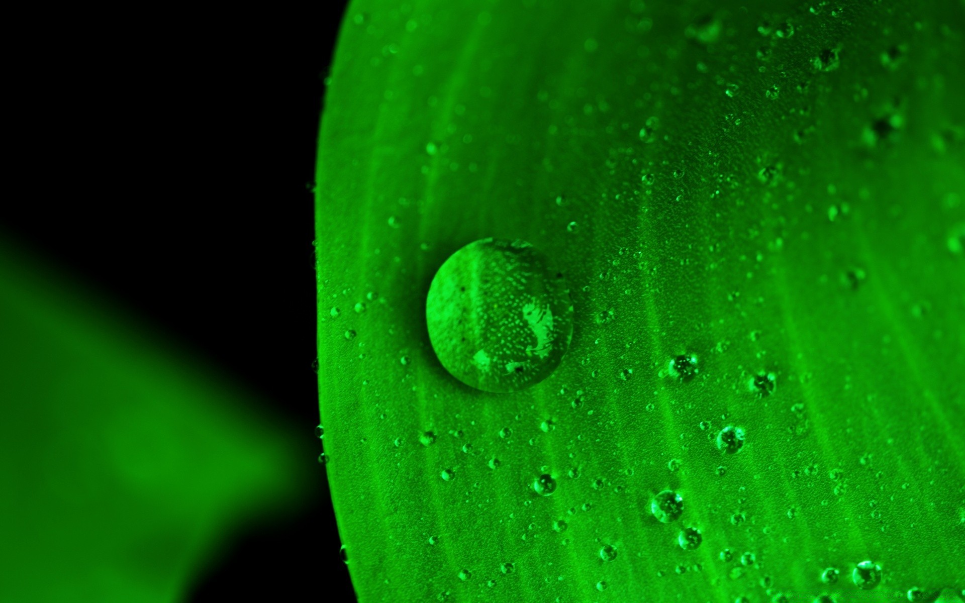 Gros plan d'une feuille verte avec des gouttes de rosée
