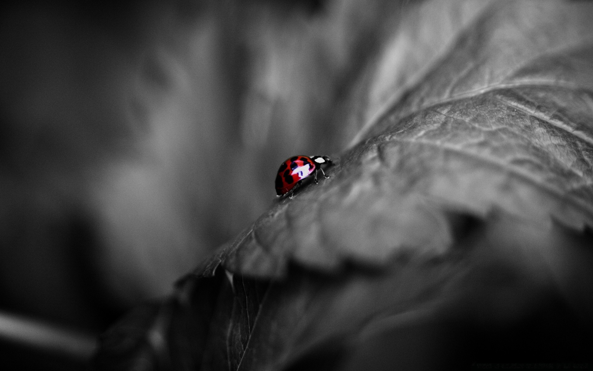 Coccinelle sur fond noir et blanc