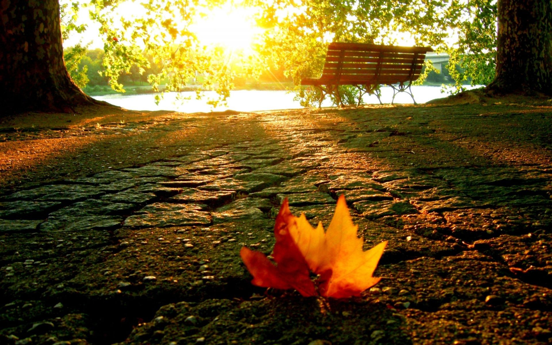 Une feuille tombée sur le chemin du lac