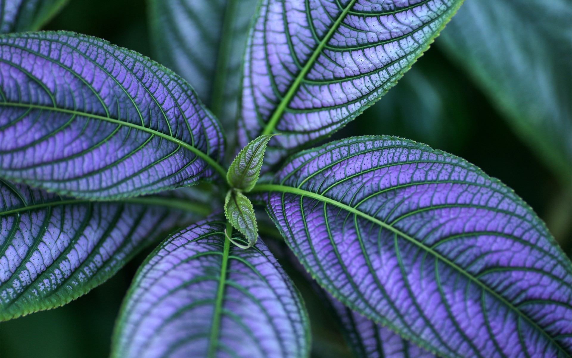 Feuilles vertes sur fond violet