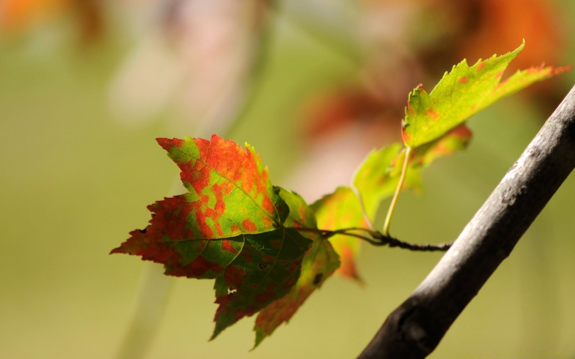 Feuilles vertes mises en évidence par les rayons du soleil sur fond flou