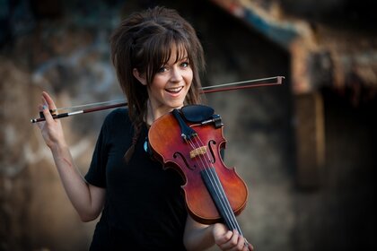 Fille avec violon. Musicien. Beau sourire
