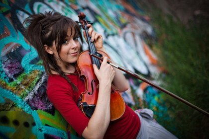 Graffiti. Fille avec violon. Joli visage