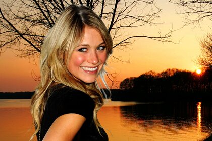 Fille souriante sur fond de rivière