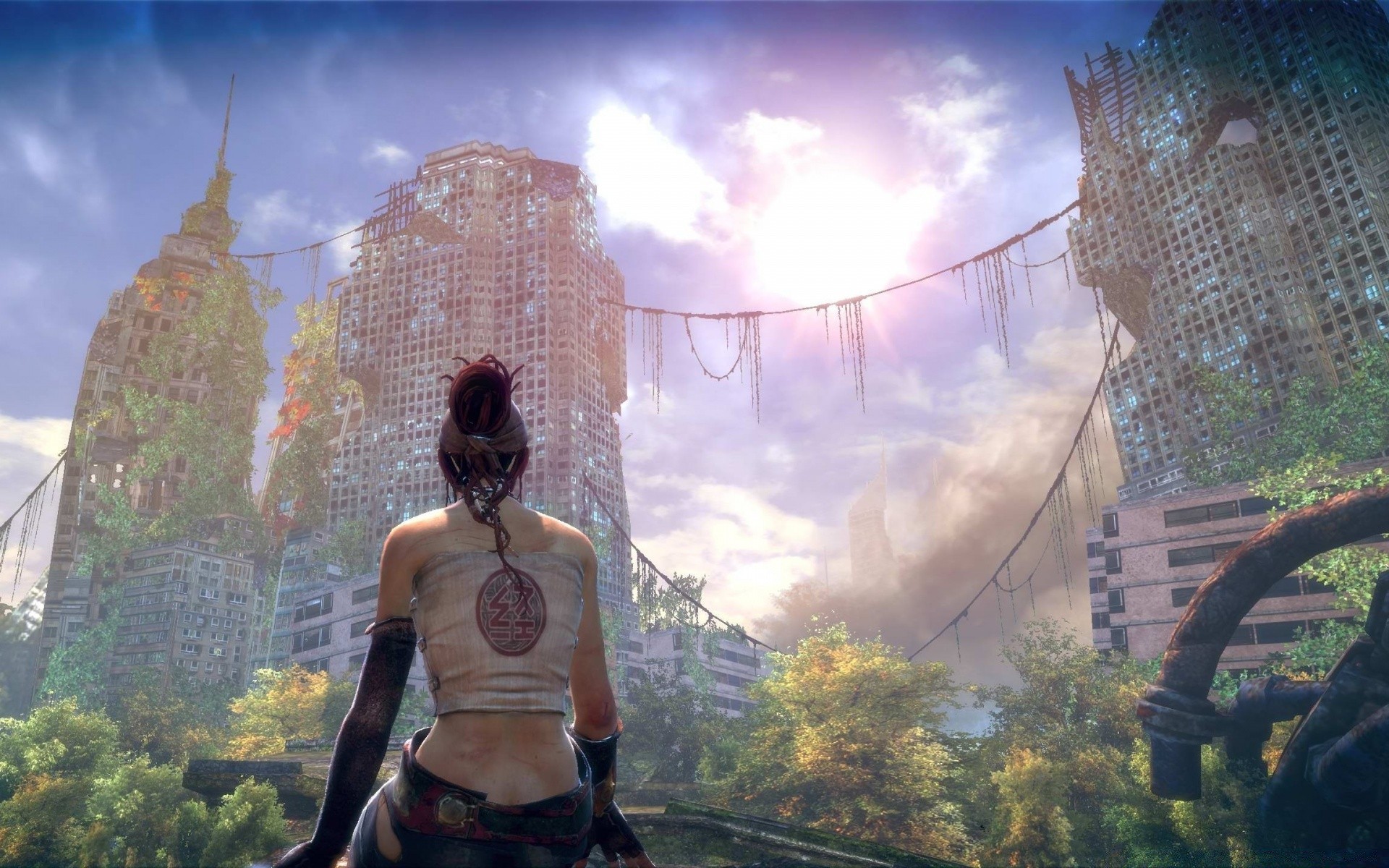 Fille assise sur le toit avec un animal fantastique sur fond de coucher de soleil