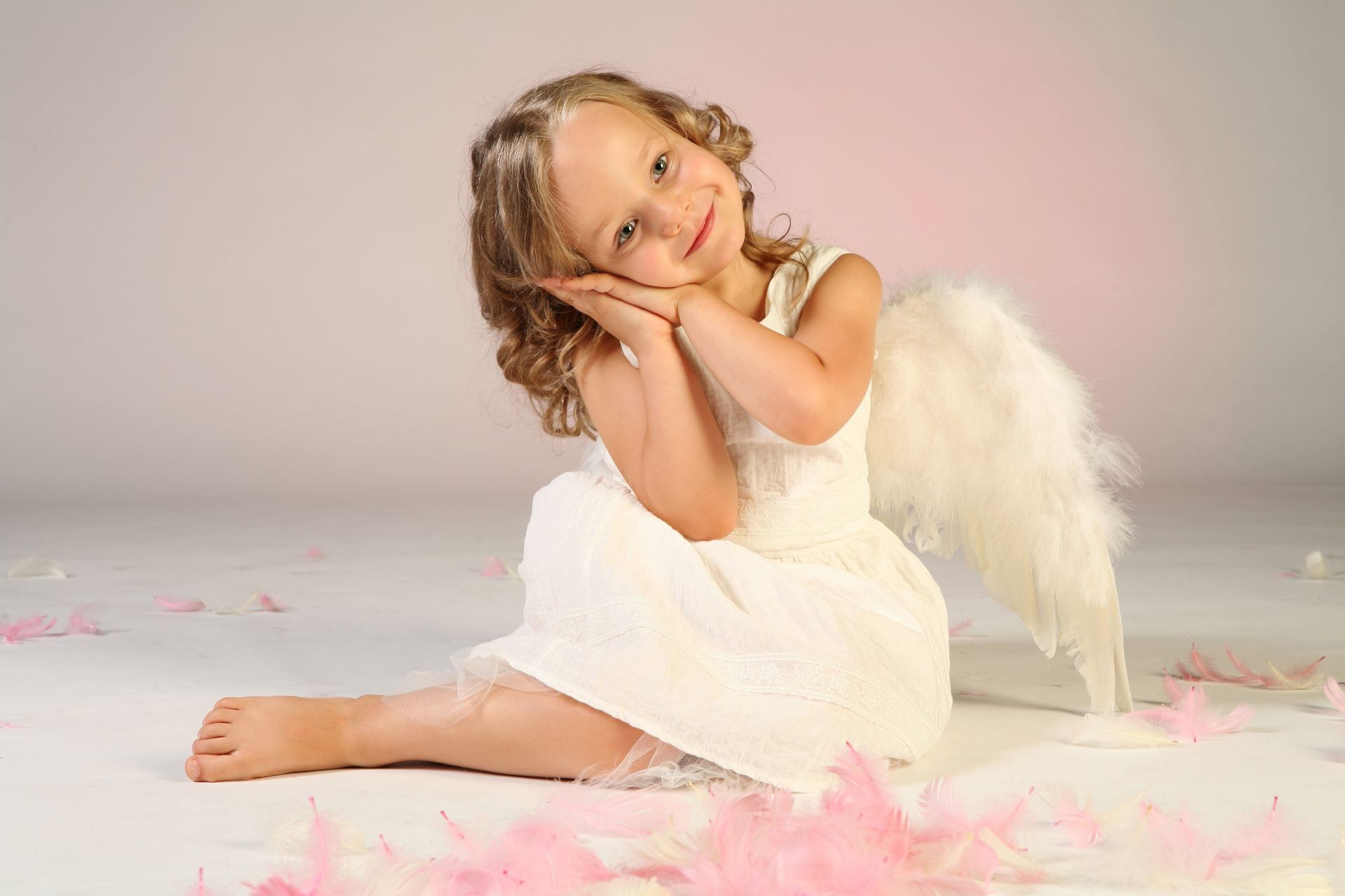 Bébé ange. Petite fille en costume d'ange. Ailes blanches, robe blanche