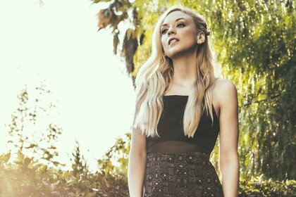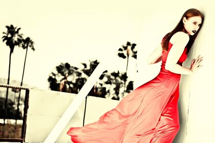 Fille en blanc avec un sac blanc assis sur des pierresFille en blanc avec un sac blanc assis sur des pierres