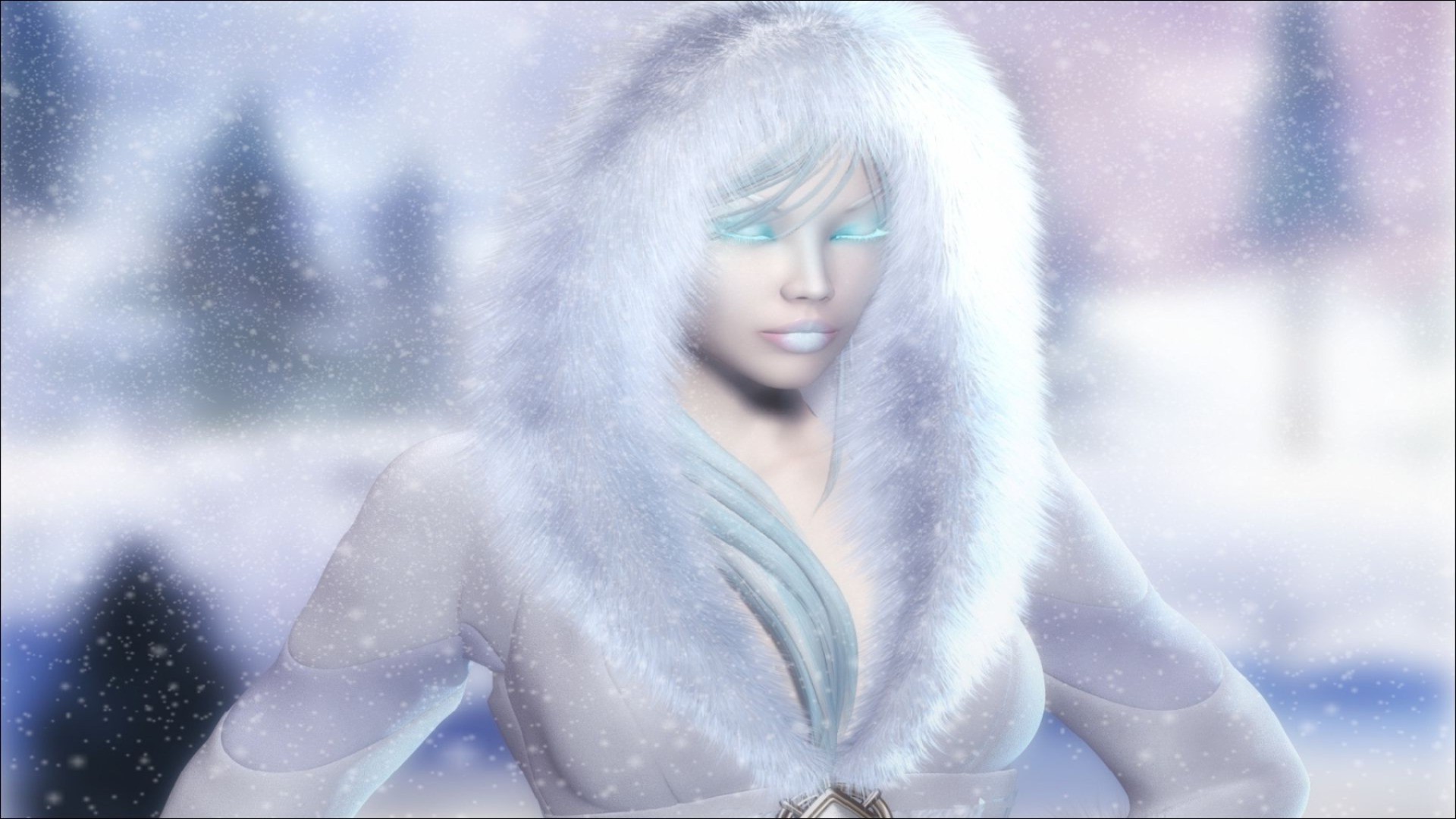 Fille de dessin animé dans une veste de fourrure