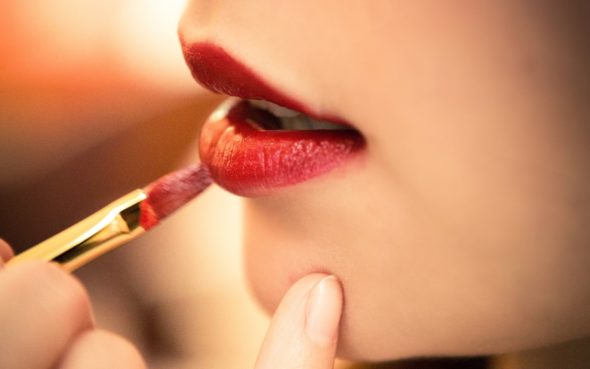 Fille peint les lèvres avec du rouge à lèvres