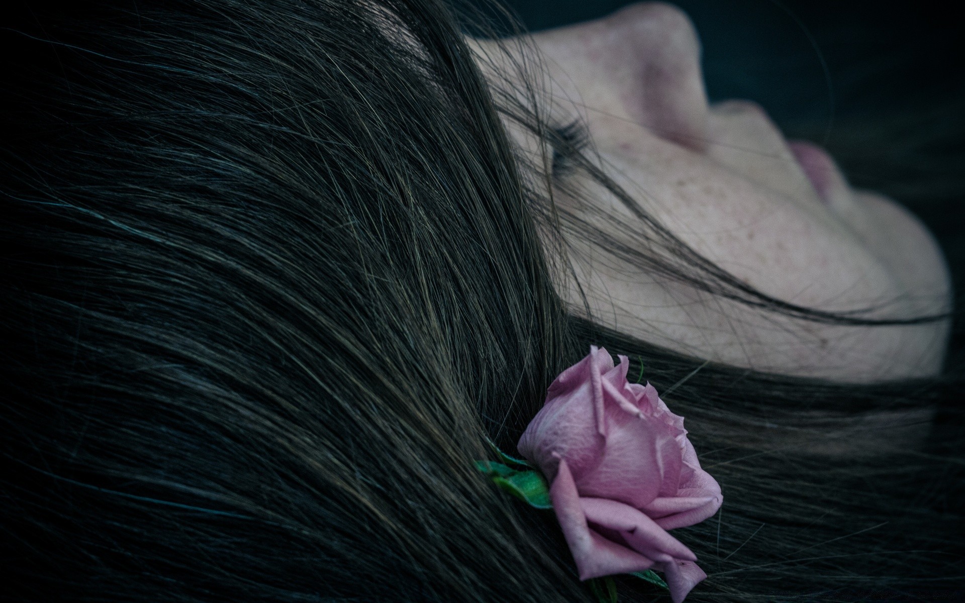 Femme avec une pose rose dans les cheveux