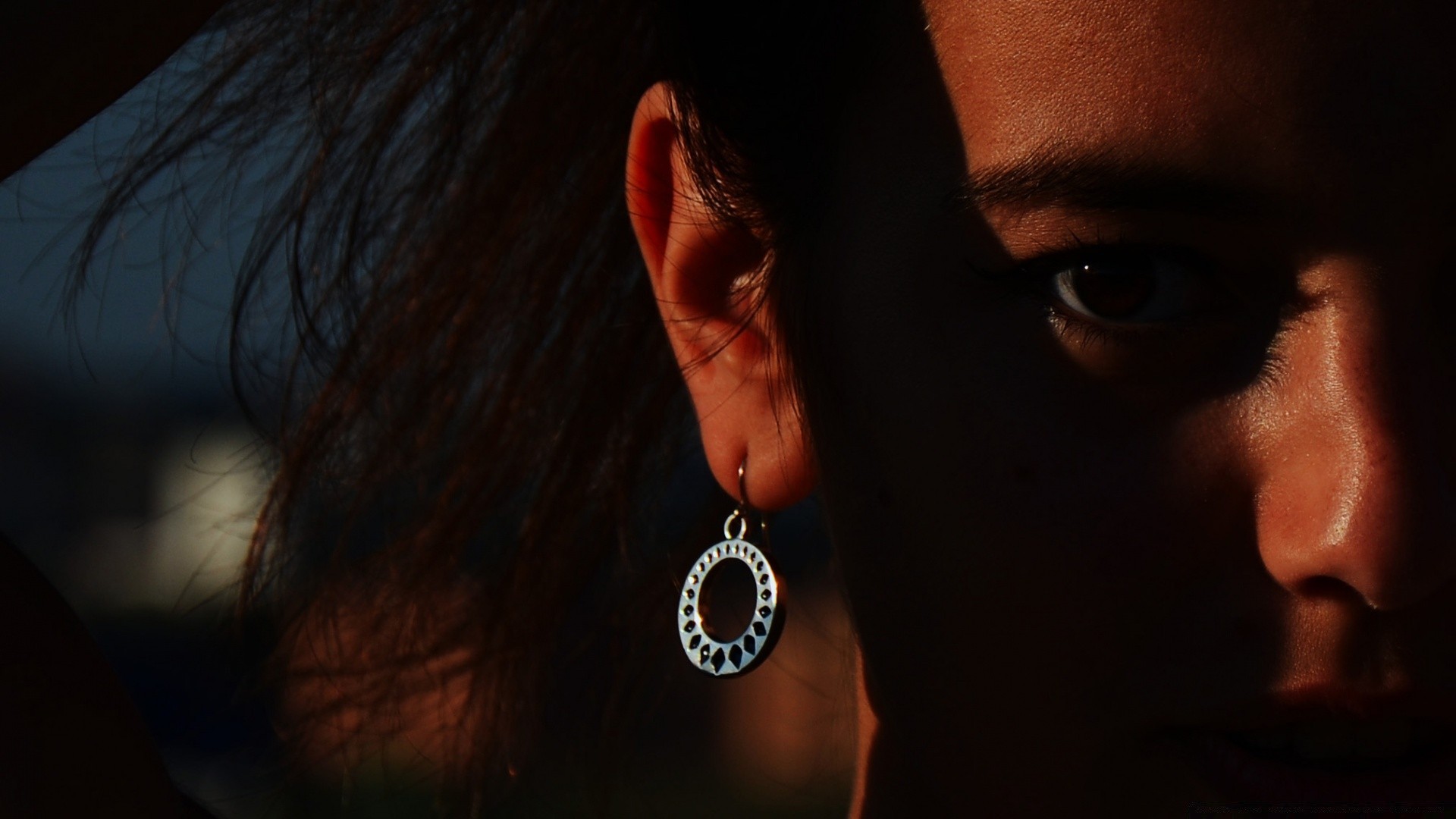 Boucle d'oreille dans l'oreille d'un homme dans l'obscurité