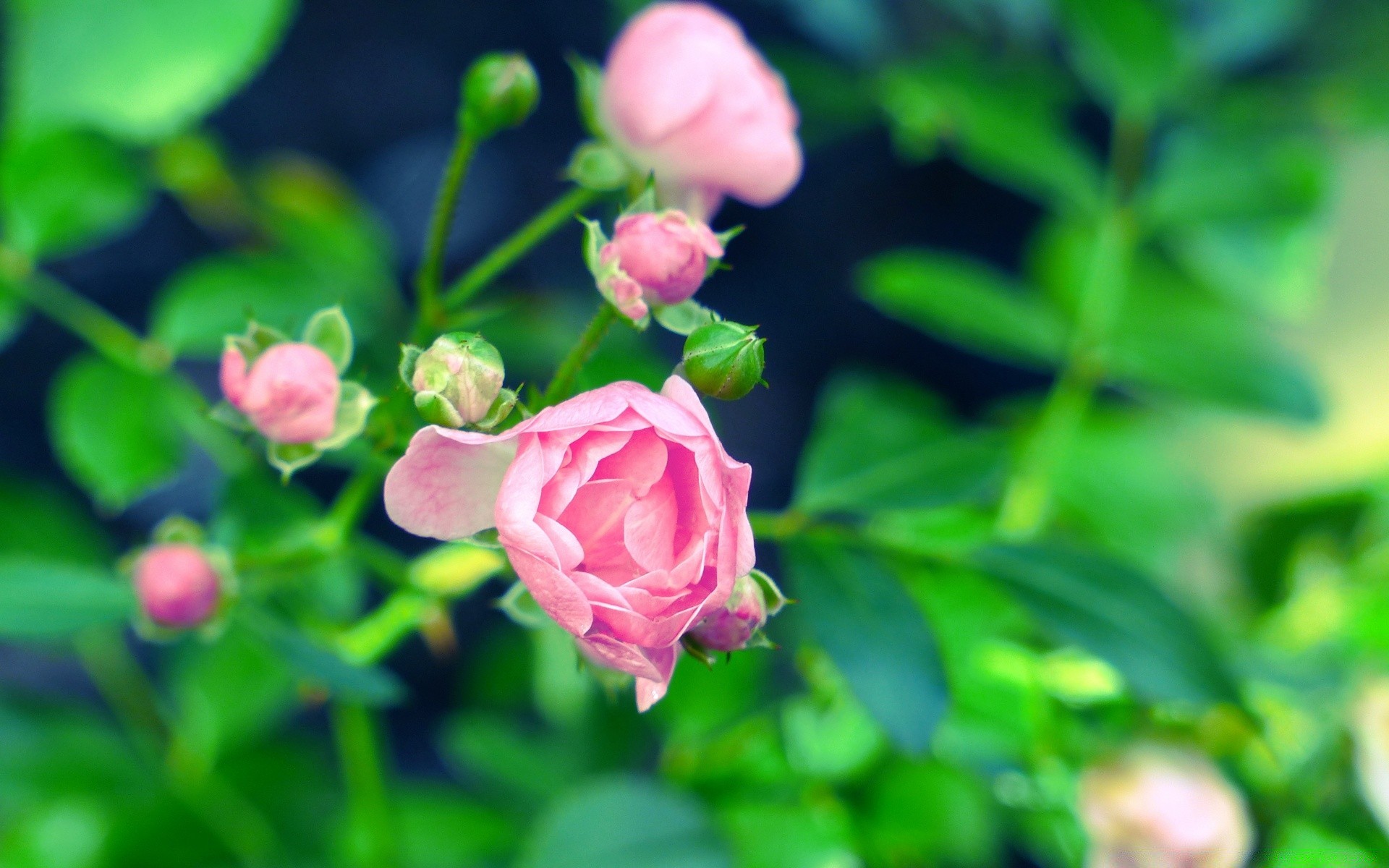 Jardin fleuri, fleurs roses en pot et sur le parterre de fleurs
