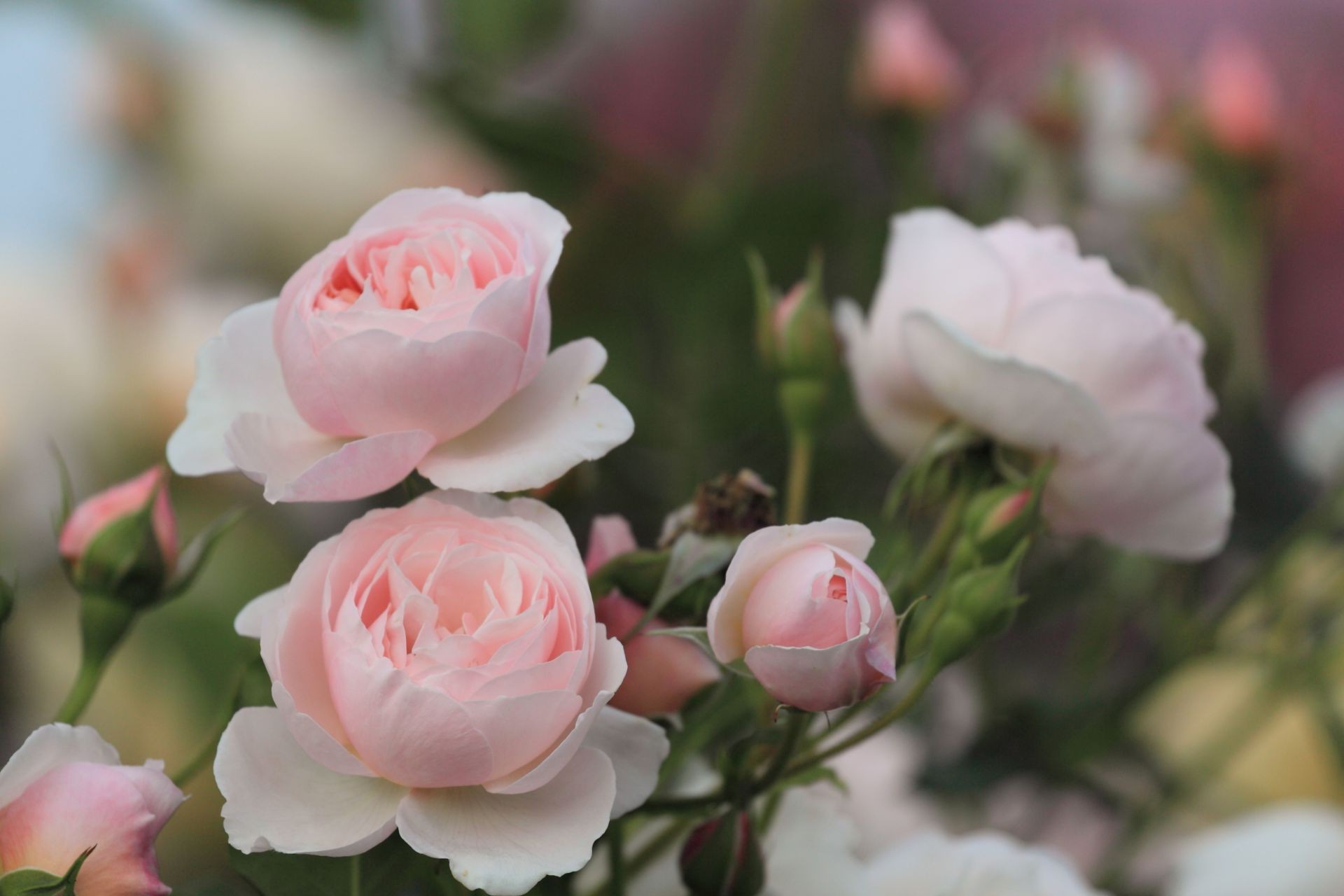 Roses roses sur fond de jardin flou