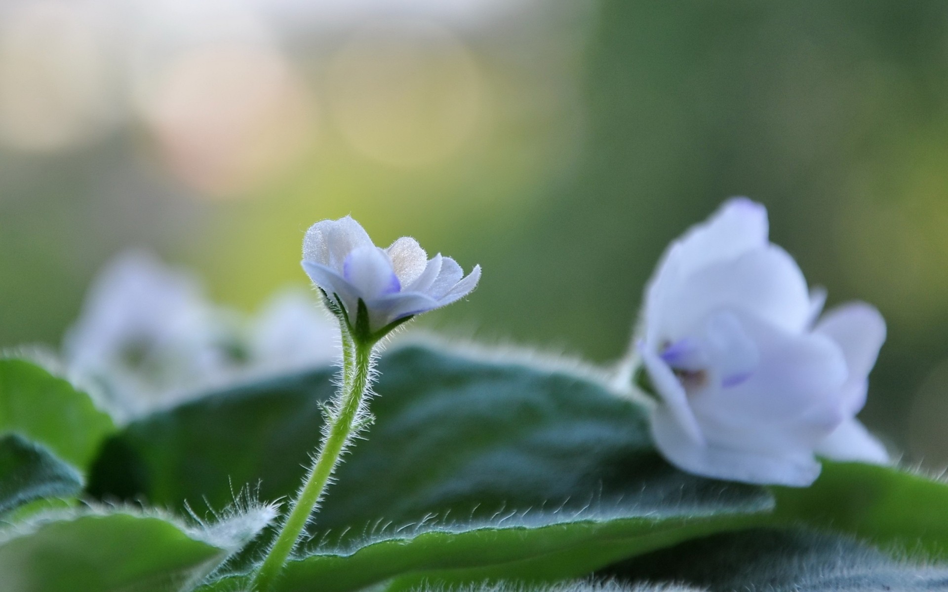 Besoin de fleurs violettes bleues sur une feuille verte