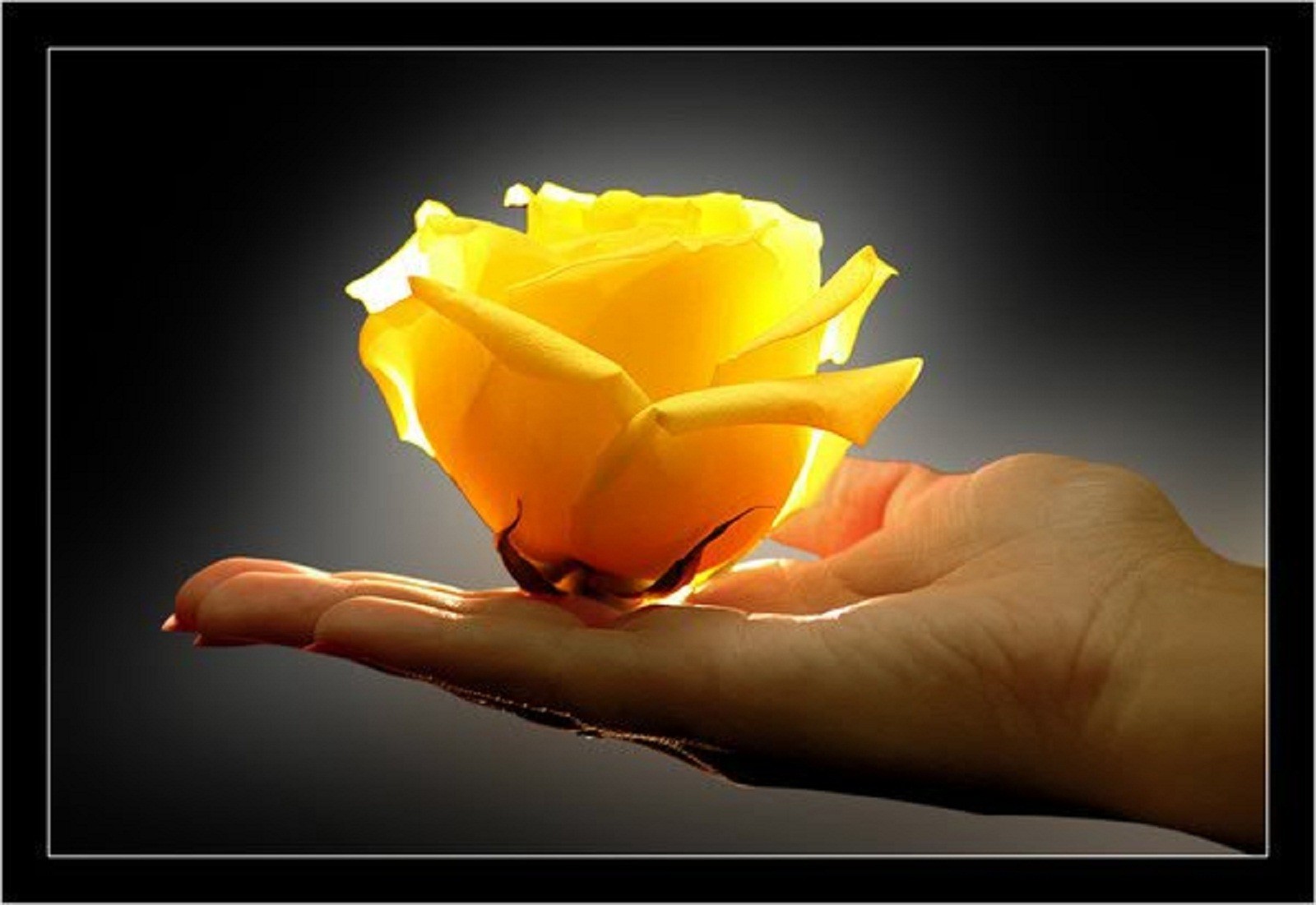 Bourgeon de rose jaune sur la paume