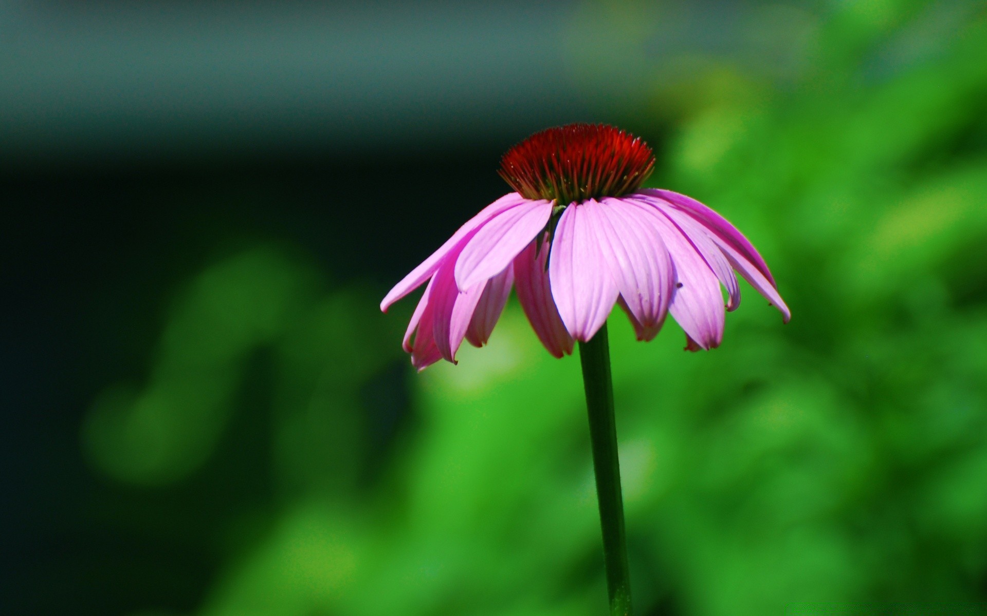 Partie d'une fleur de camomille dans des tons bleus sur fond vert