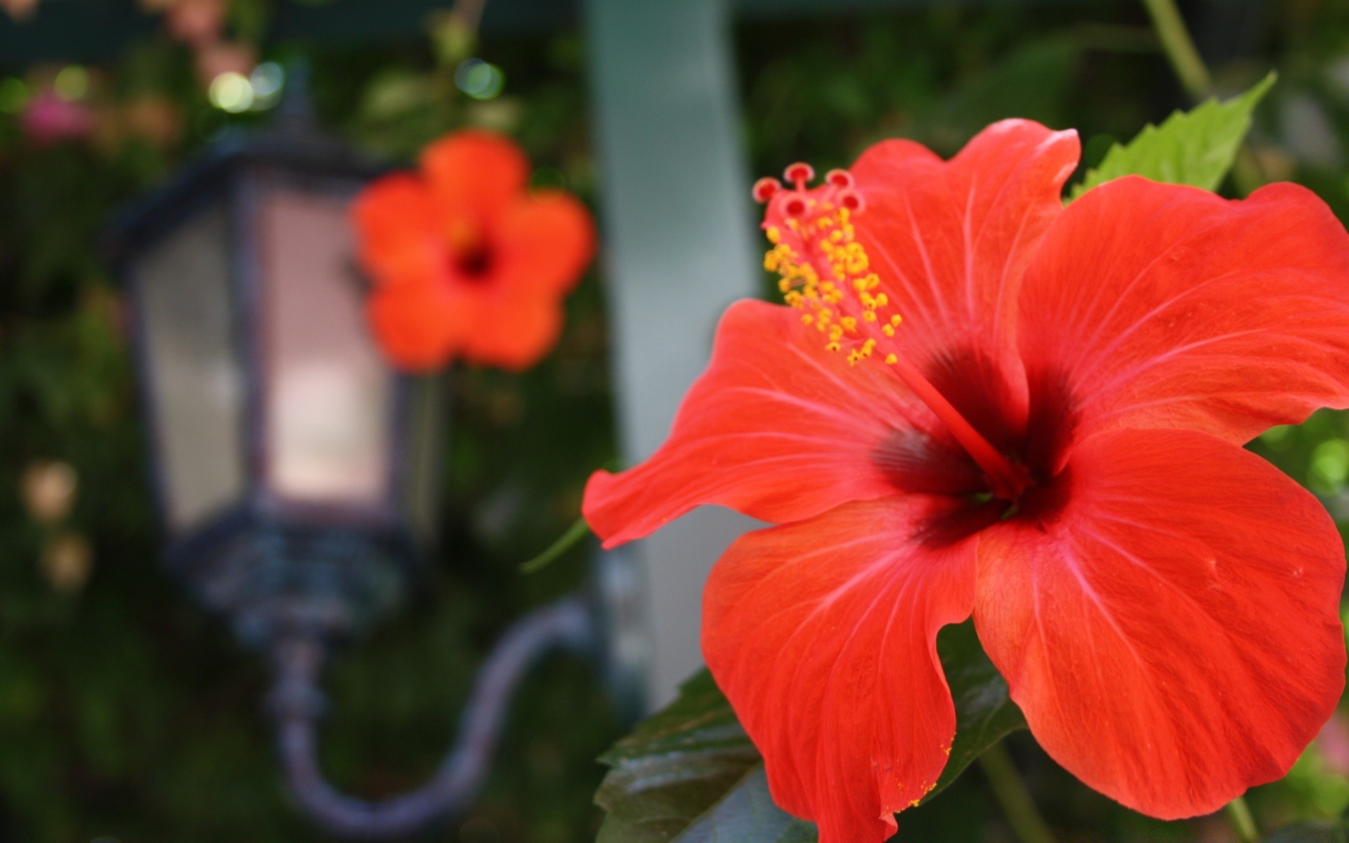Photo avec une fleur dans une clôture sur un fond flou de la ville