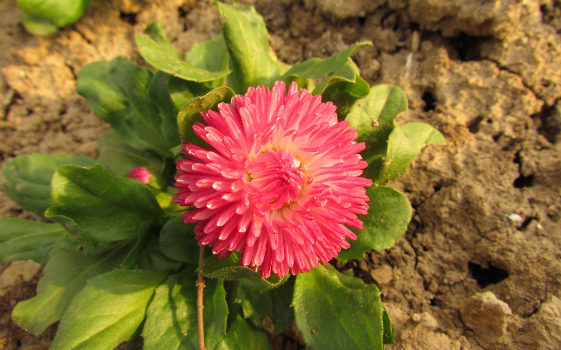 Partie d'une fleur de camomille dans des tons bleus sur fond vert