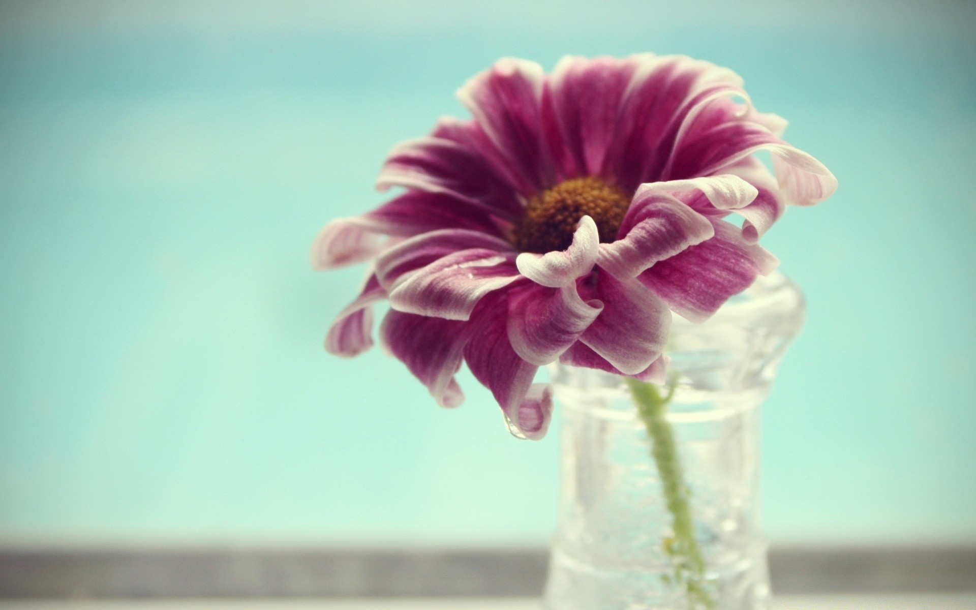 Fleur en pot sur fond bleu