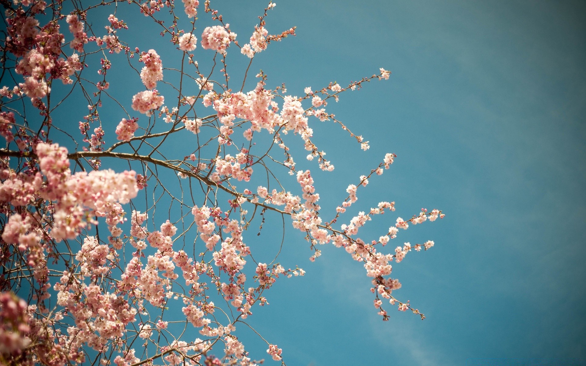 Branches de fleurs de cerisier sur fond de ciel bleu