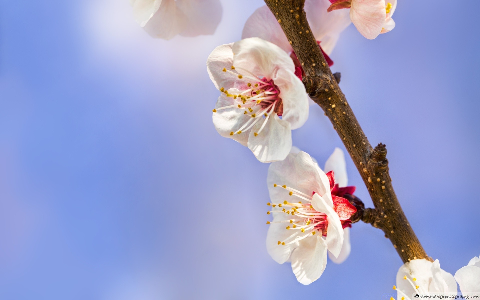 Branches de fleurs de cerisier sur fond de ciel bleu