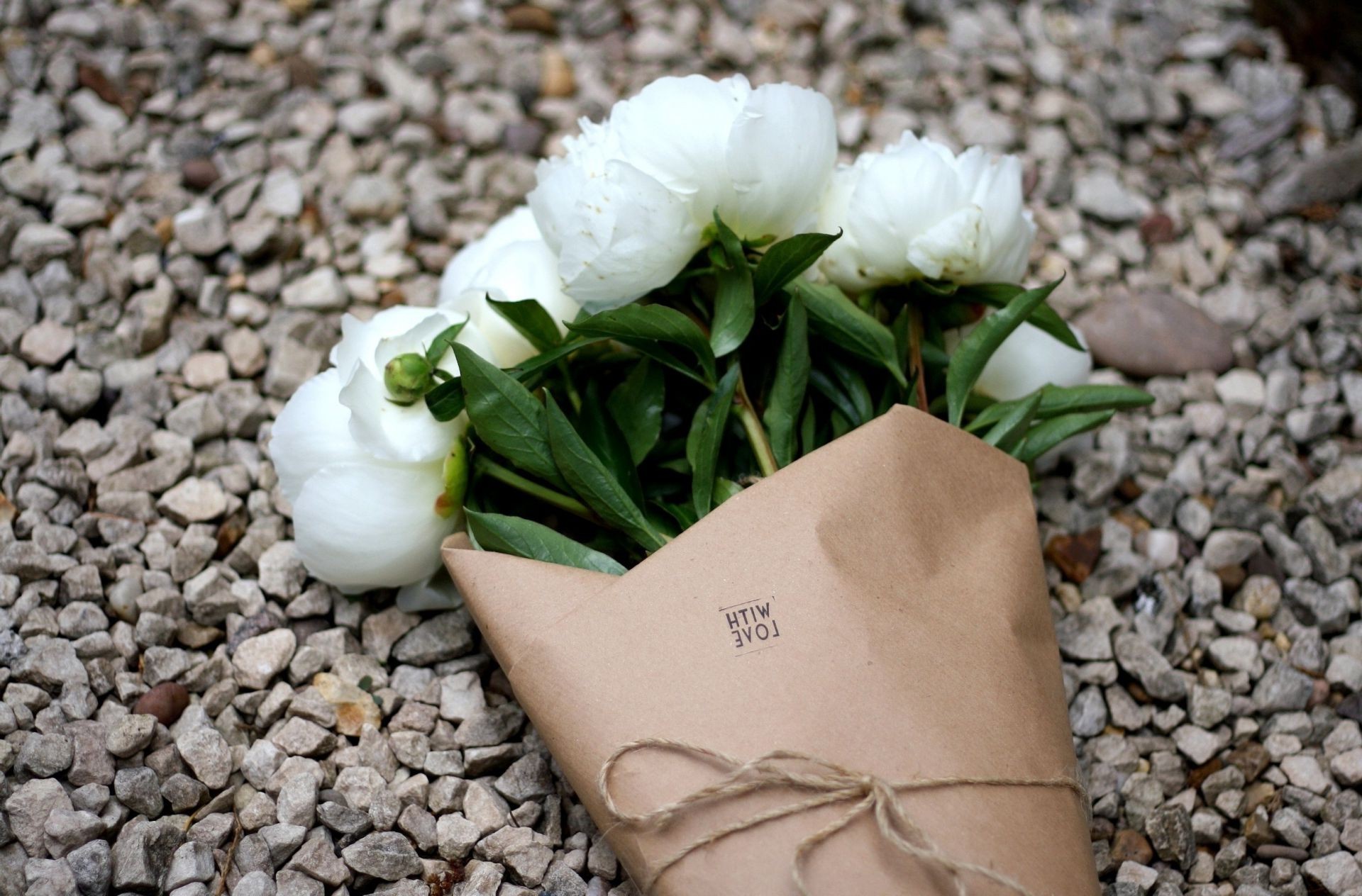 Beau bouquet de fleurs de roses jaunes et roses dans l'emballage