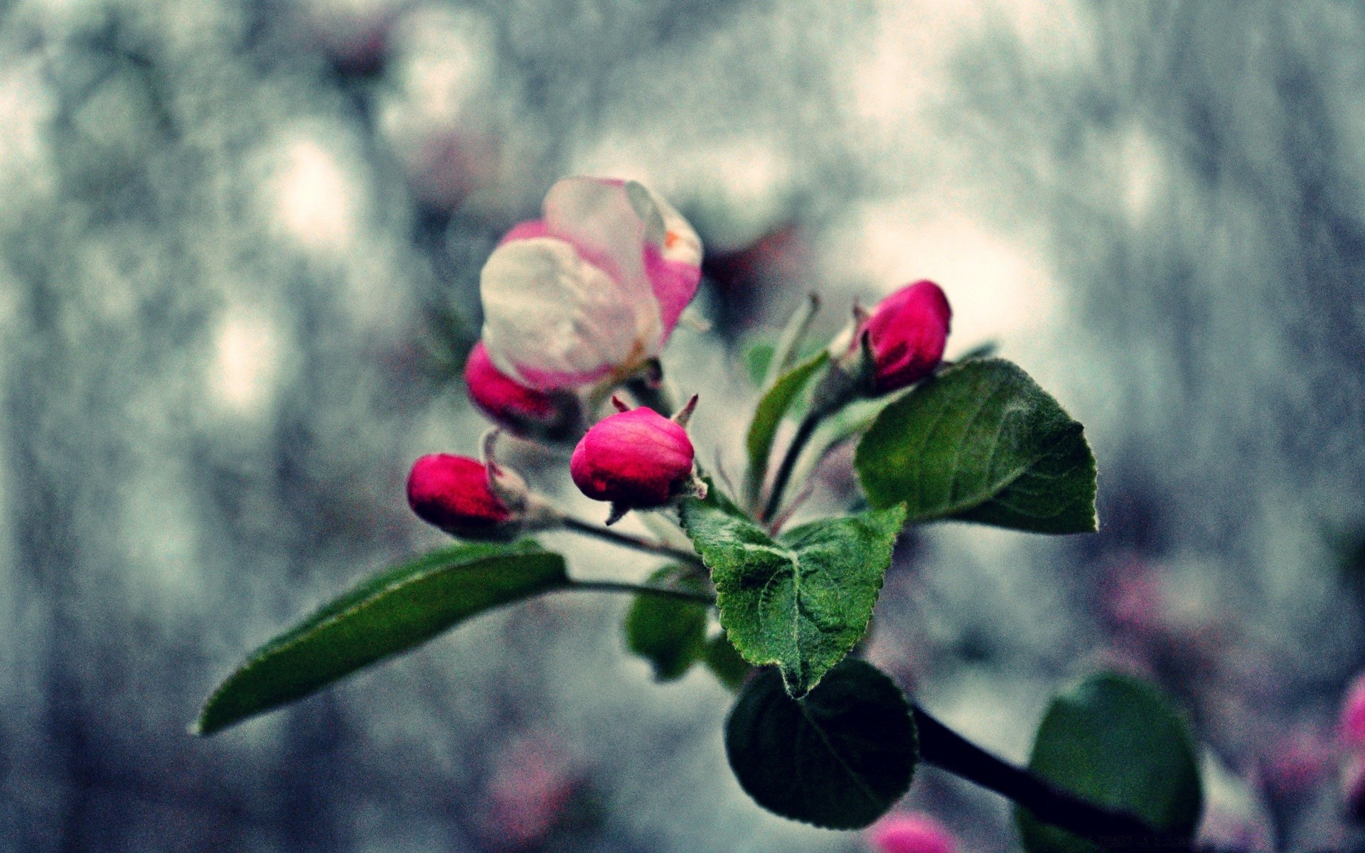Pommier en fleurs sur fond flou