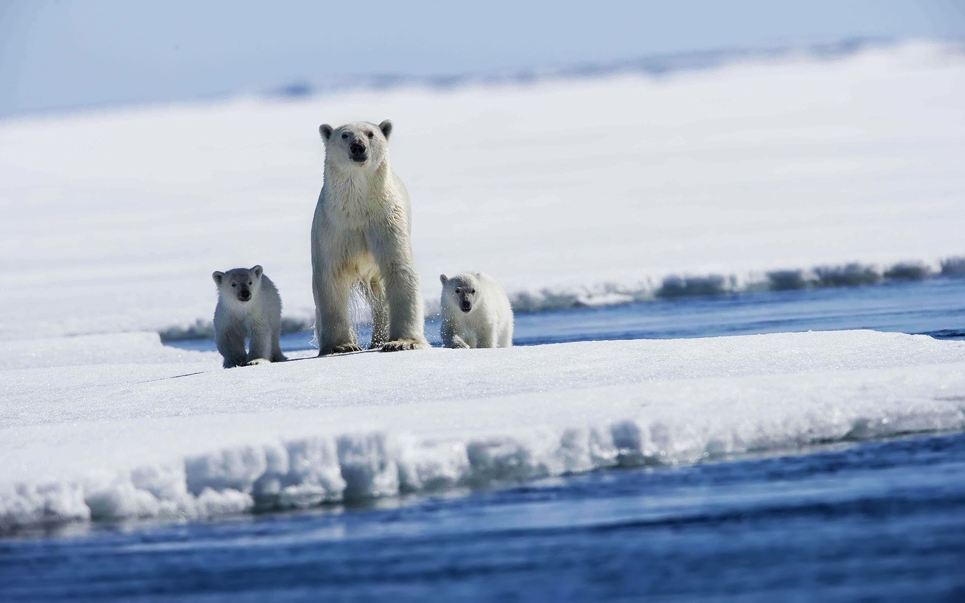 Trois ours polaires sur la banquise