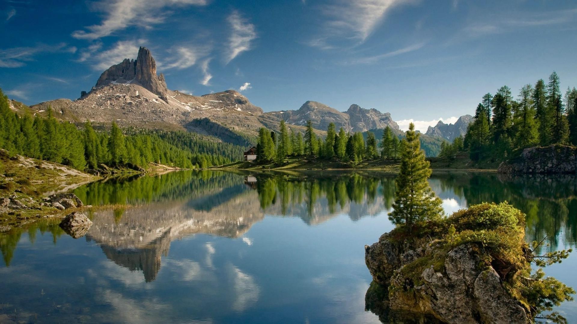 Les montagnes et les arbres se reflètent dans le lac