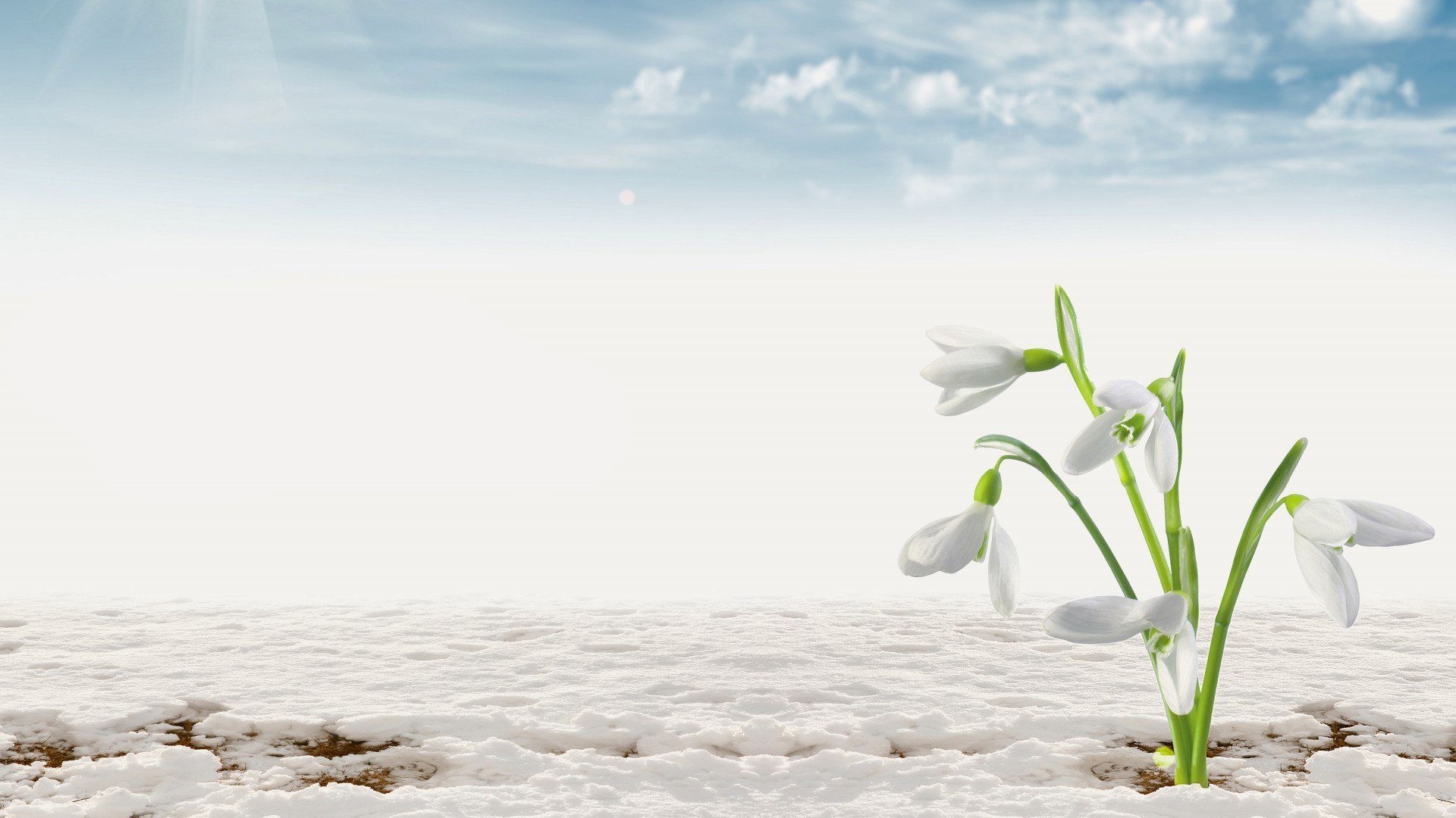 Paysage d'hiver avec des fleurs dans la neige