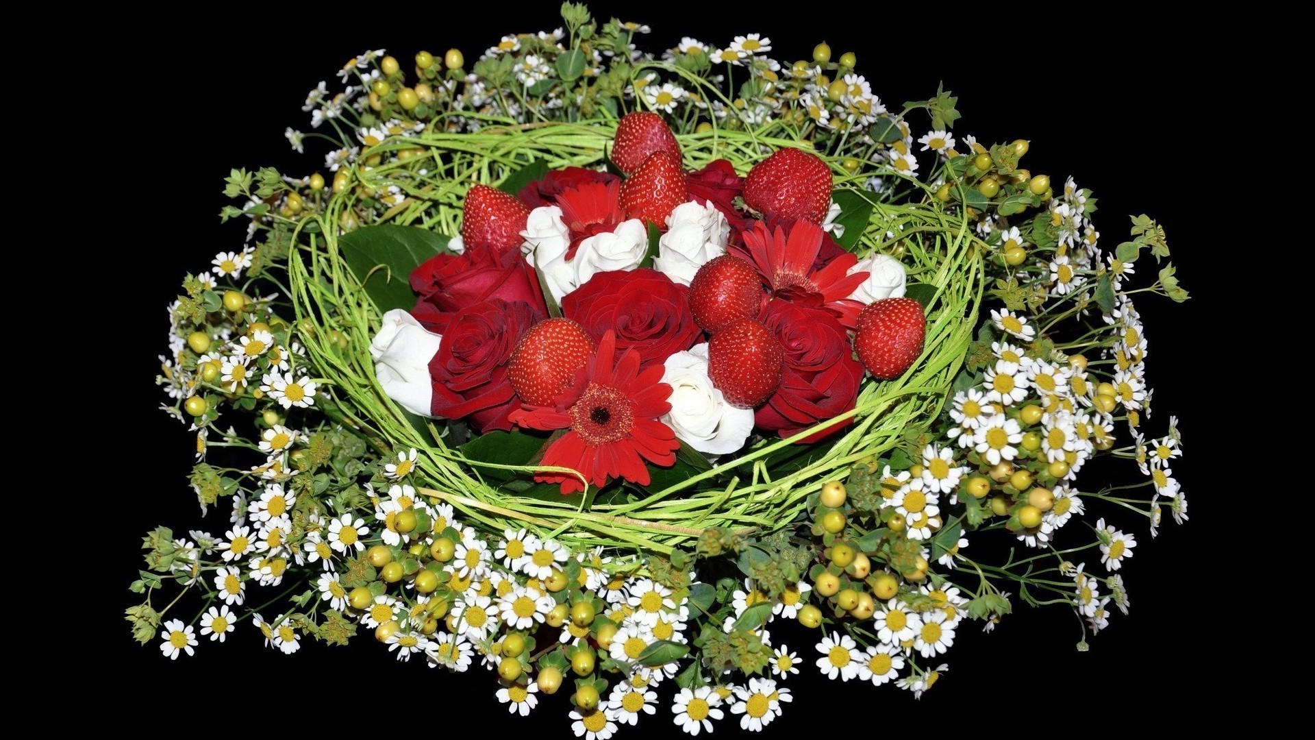 Bouquet intéressant de fruits et de fleurs