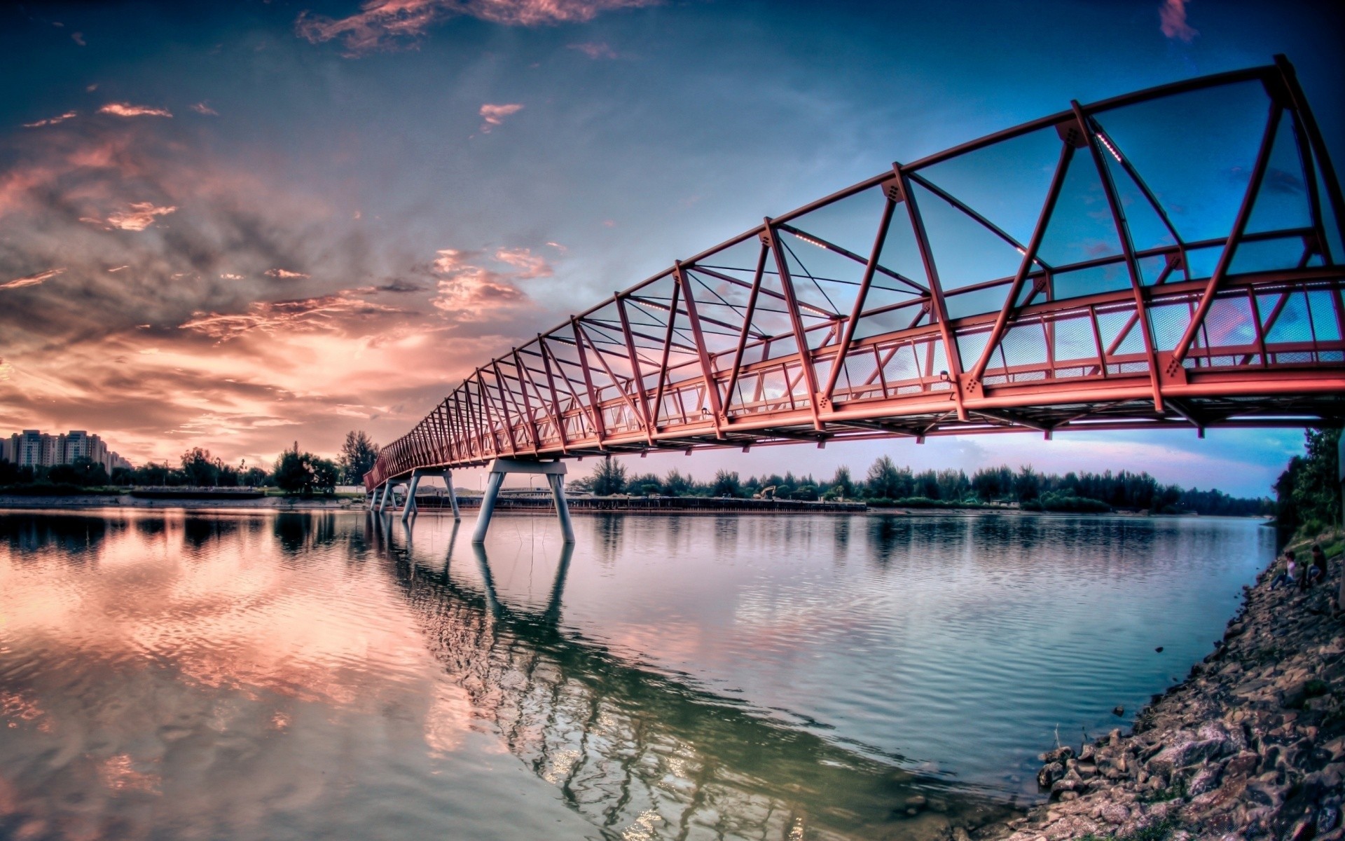 Coucher de soleil urbain sur fond de lac dans la nuit