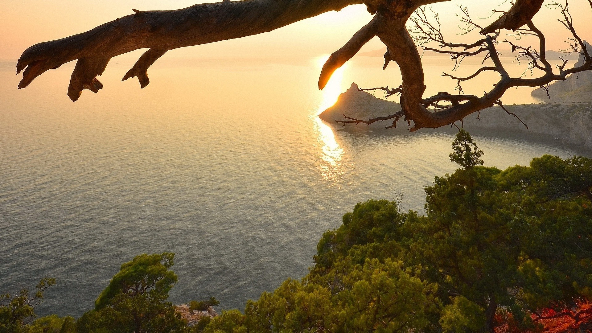 Paysage marin tranquille sur fond de ciel coucher de soleilPaysage marin tranquille sur fond de ciel coucher de soleil