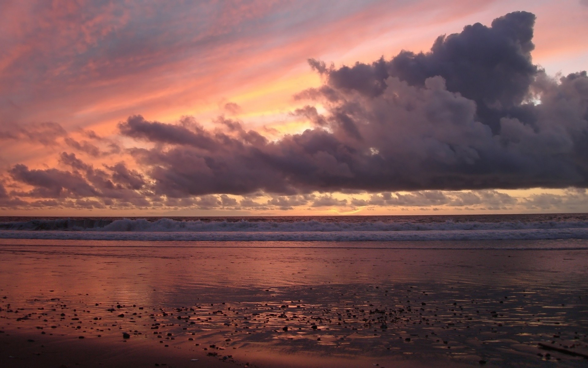 Palmier sur fond de plage et coucher de soleil dans les tons orangePalmier sur fond de plage et coucher de soleil dans les tons orange