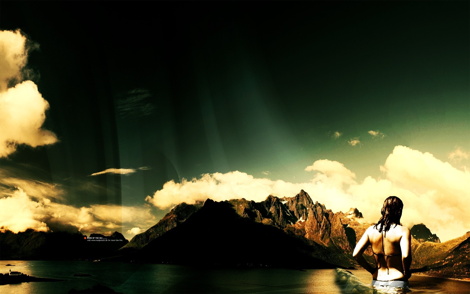 Tour sombre sur la montagne au bord de la mer sur fond de coucher de soleil de ciel noirTour sombre sur la montagne au bord de la mer sur fond de coucher de soleil de ciel noir