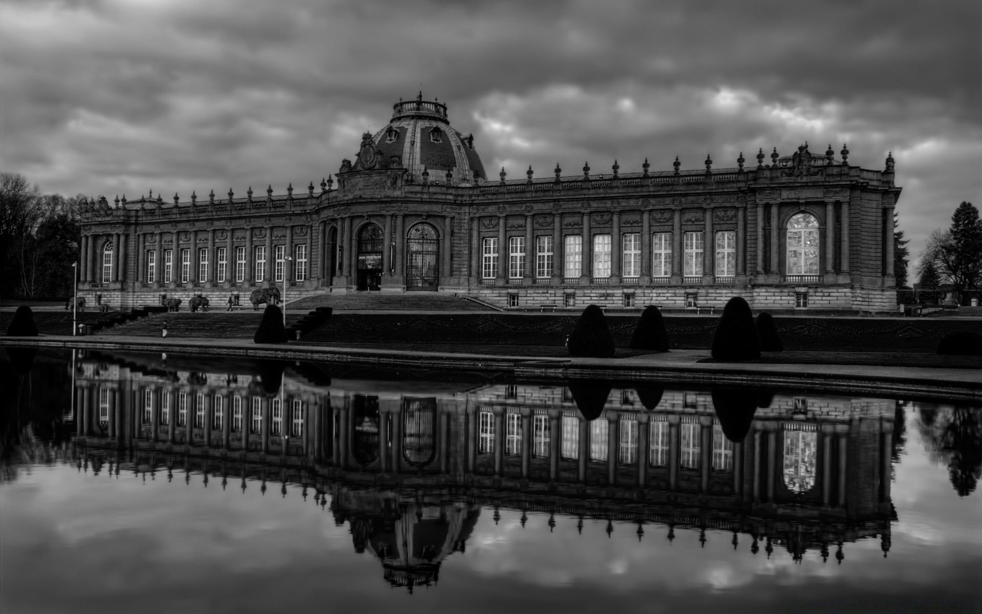 Reflet de la belle architecture de la ville dans une flaque d'eau