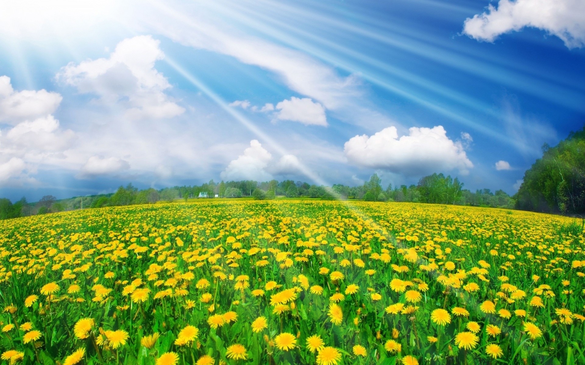 Agriculture sur fond de Prairie verte. Fleur jaune. C