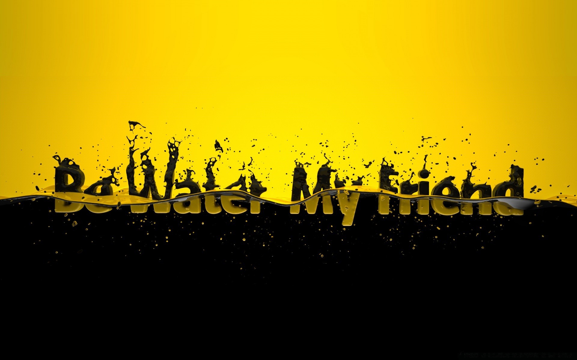 Texte placé à moitié dans l'eau sur fond noir et jaune