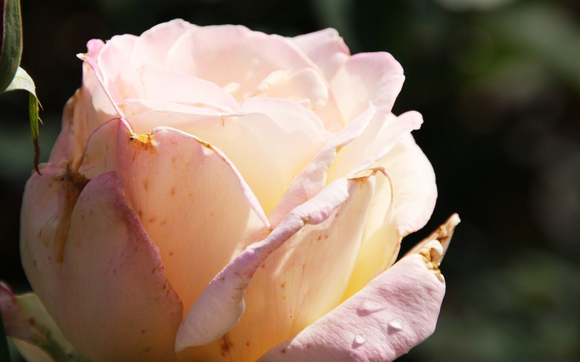 Rose tendre arrosée de rosée