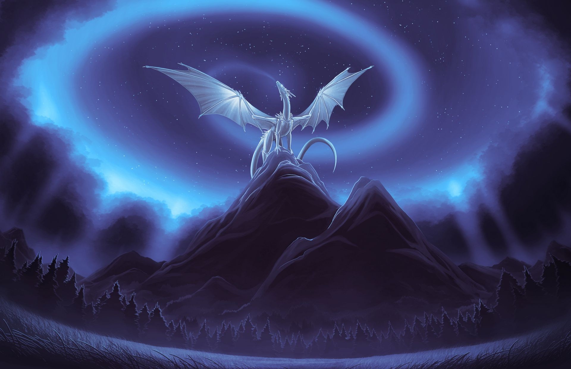 Dragon blanc comme neige debout sur les rochers