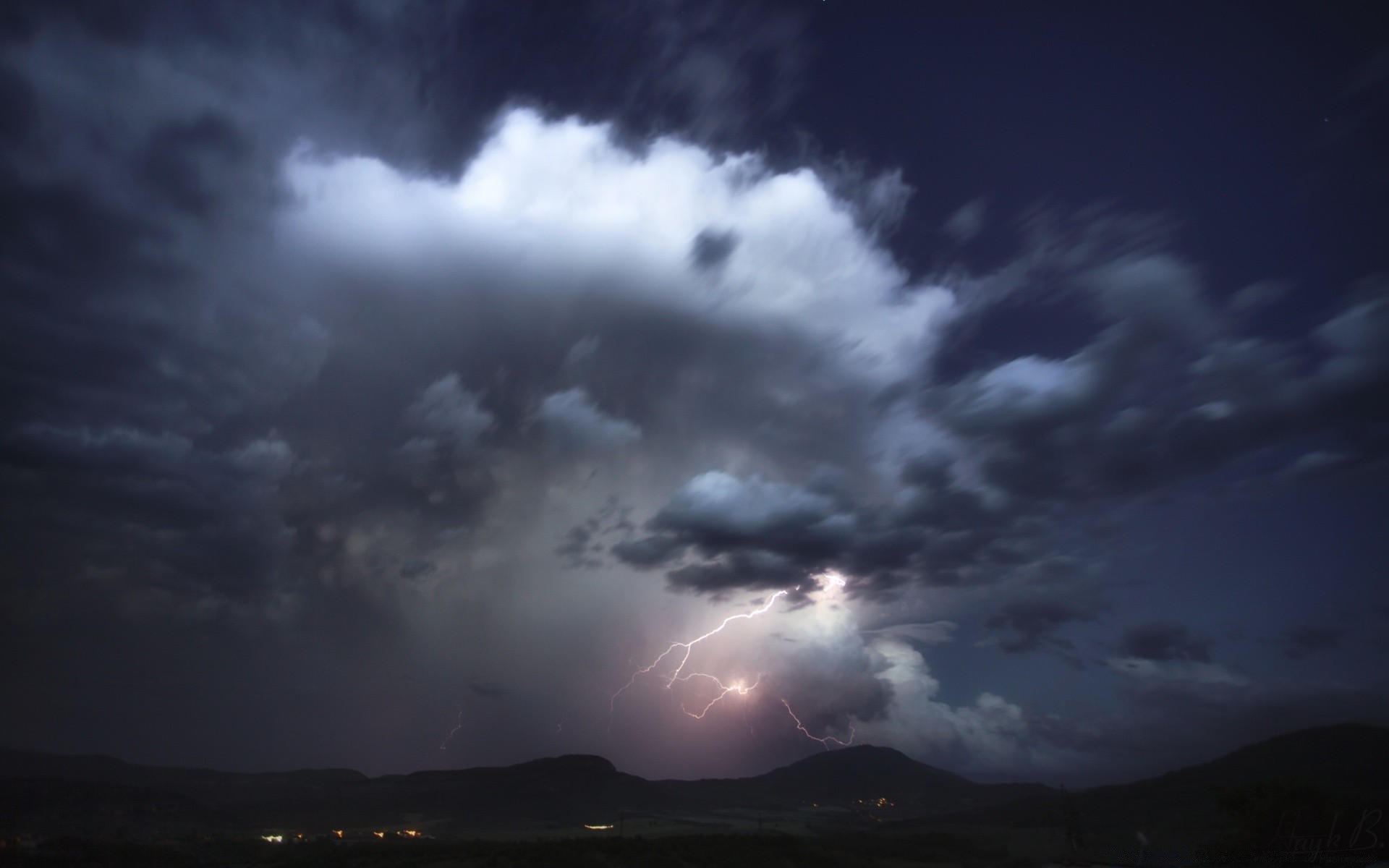 Bâtiment avec des fenêtres en miroir dans un moment de foudre céleste