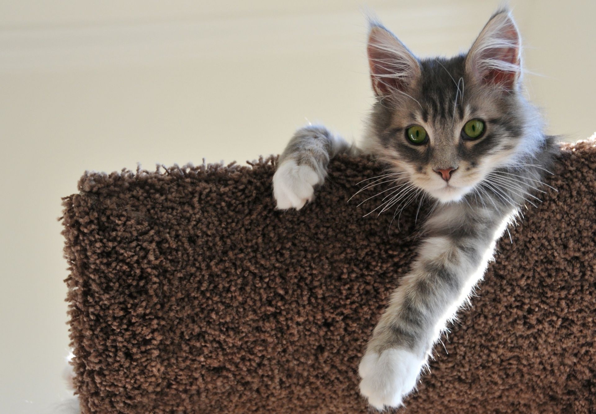 Chatte dans un chapeau blanc avec un bouquet de fleurs