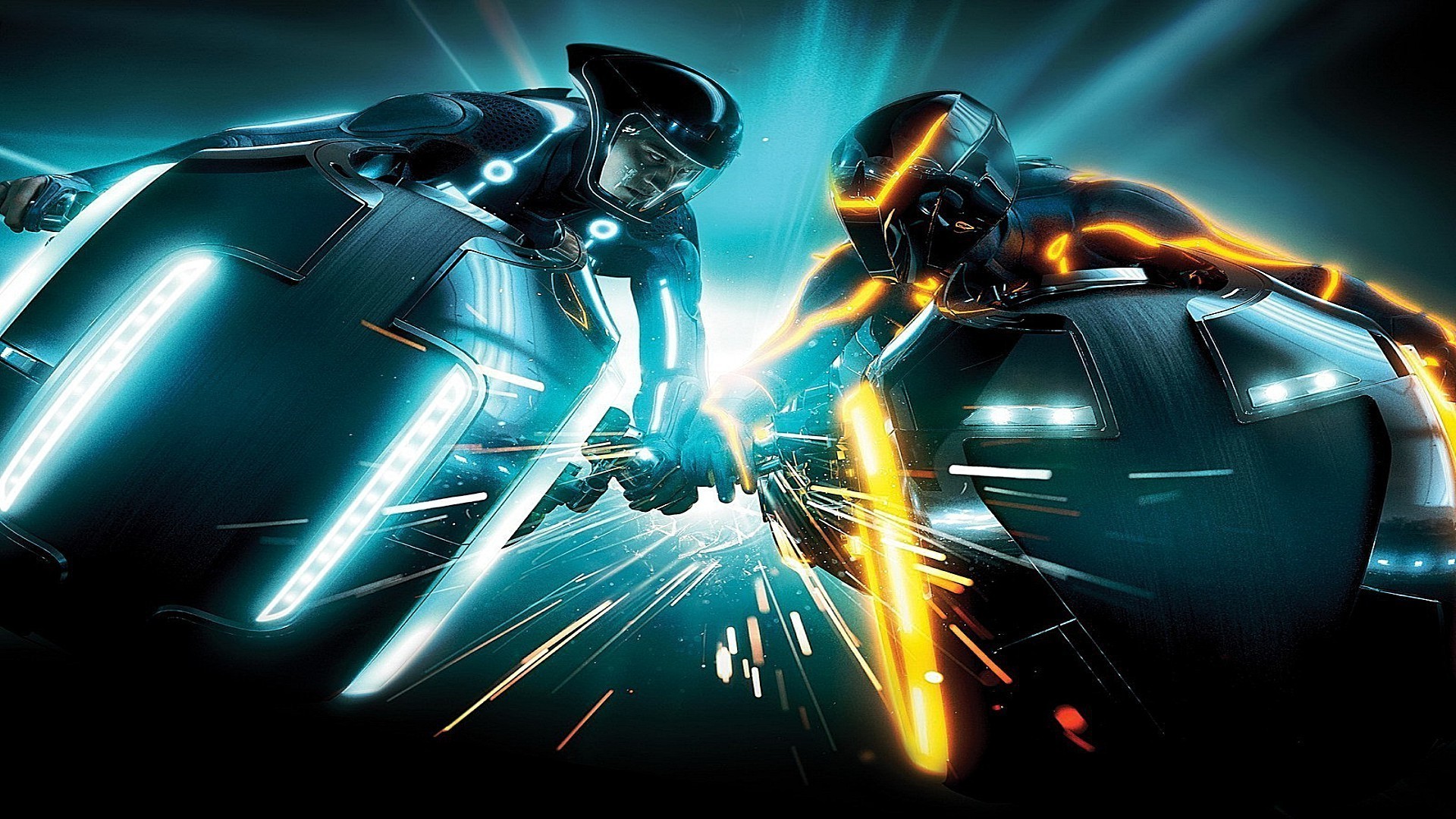 Deux pilotes sur des motos futuristes