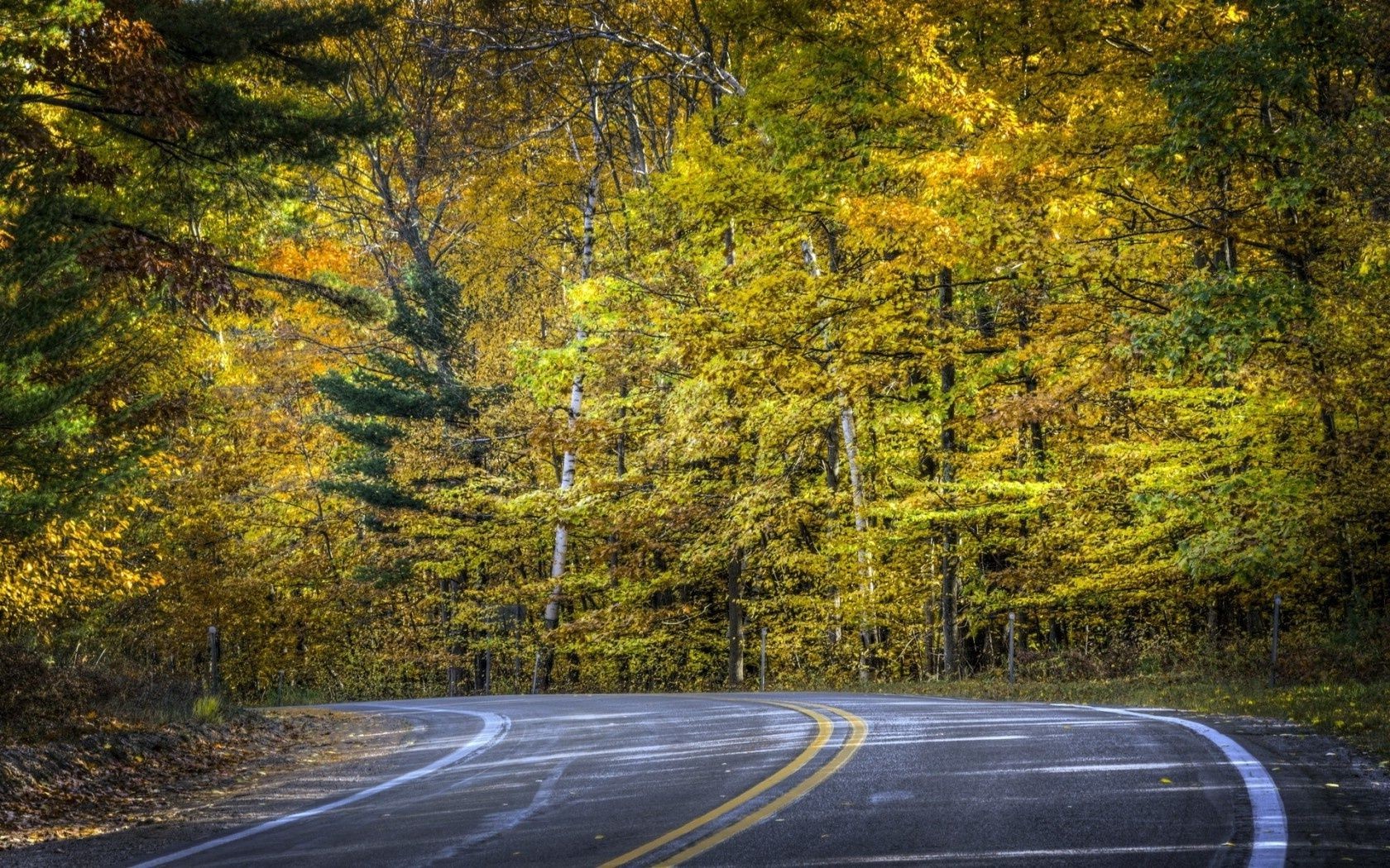 Route d'automne. Feuillage jaune