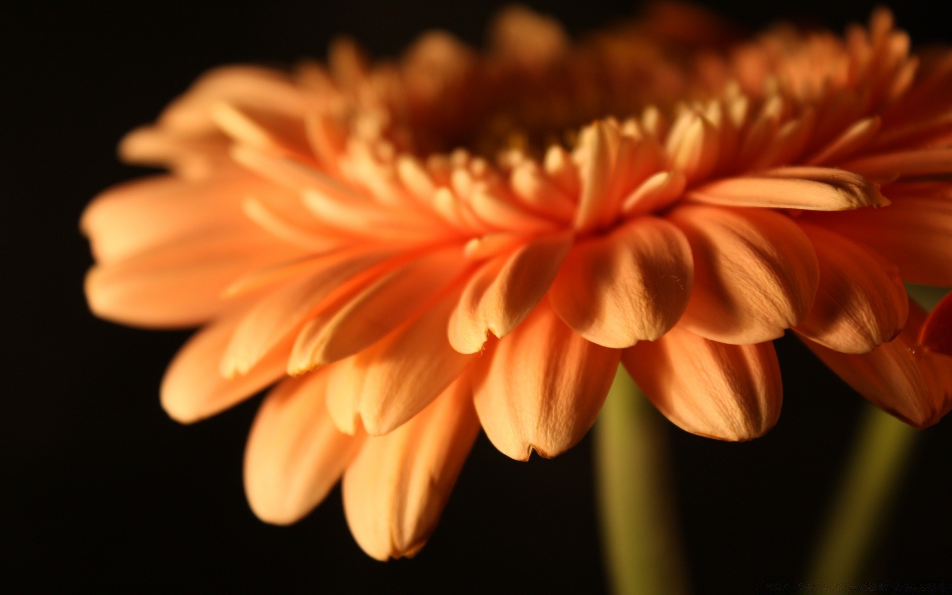 Fleur de gerbera rouge et inscription en noir sur fond gris