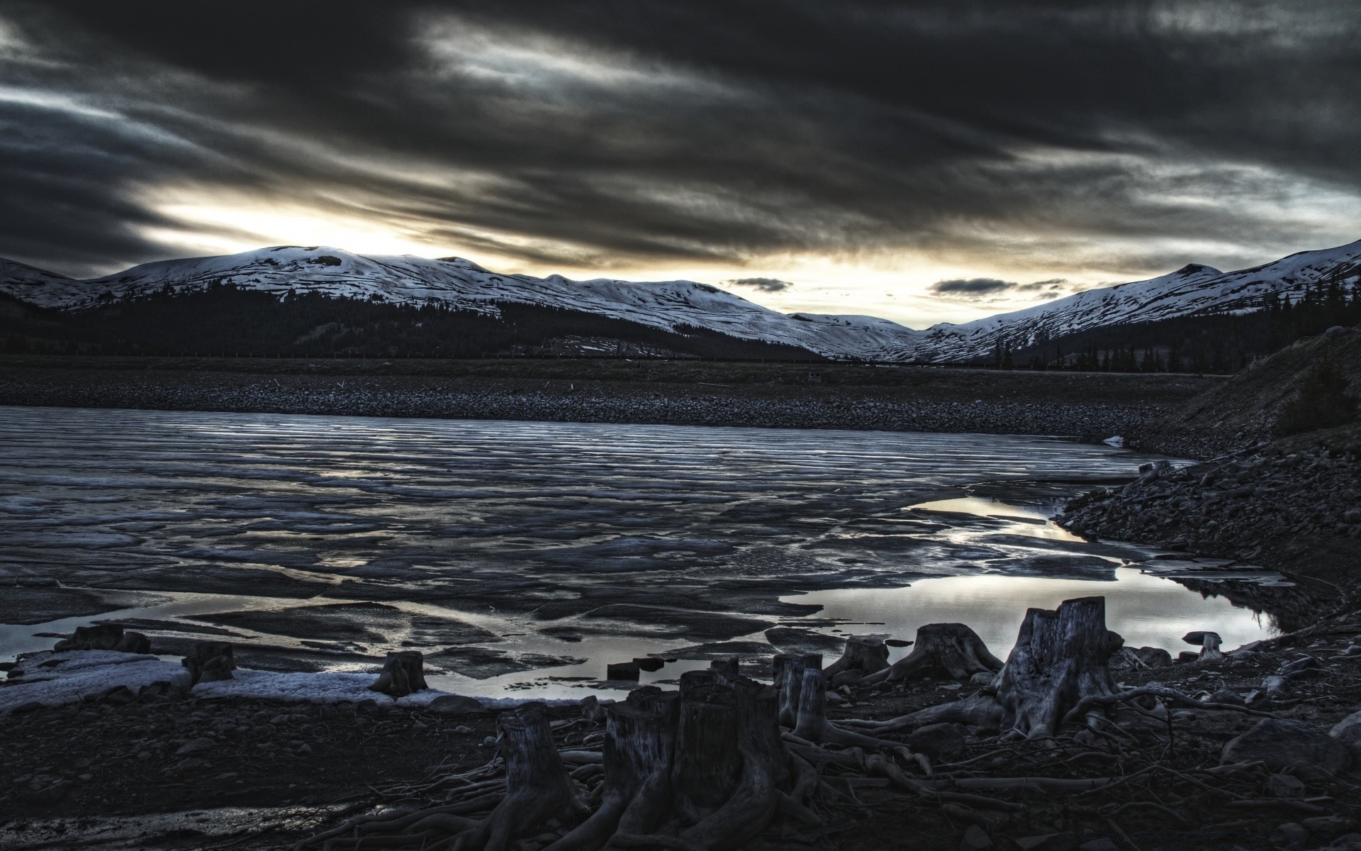 Gros morceau de glace sur fond de coucher de soleil rouge