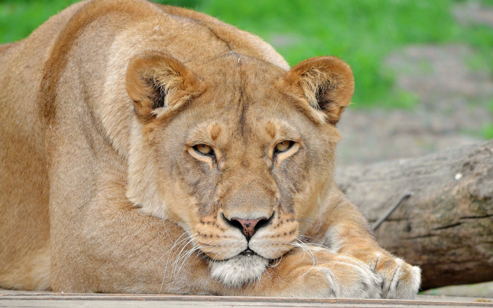 Lionne sauvage a mis sa tête sur ses pattes